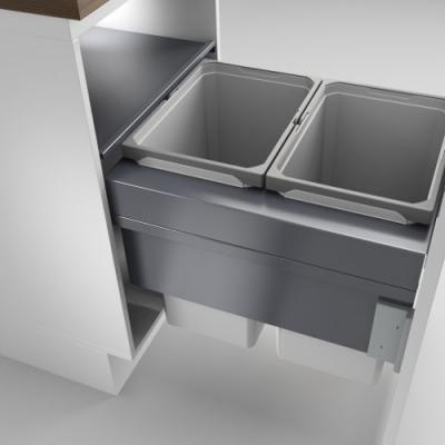 Abfallsammler als Frontauszugsystem mt Selbsteinzug und Airmatic-Anschlagdämpfung