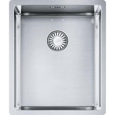 Die Franke Box präsentiert sich als vollkommene Einheit in Design, Funktionen und Material. Alle Franke Box Becken sind stets mit einem Druckknopfventil verfügbar. Bei Modellen mit Armaturenbank ist alternativ ein Drehexcenter wählbar. Bei Modellen ohne Armaturenbank sowie Unterbaubecken können statt des Druckknopfventils ein Zugknopfventil oder ein Siebkorb als Stopfenventil (Handbetätigung) gewählt werden. Franke Box setzt mit ihrer bewusst reduzierten Formensprache den Trend zu geraden Linien in der Küchenarchitektur fort.