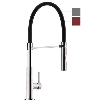 Einhebelmischer. Mit seitlichem Hebel, 2-Strahl-Handbrause und Keramikkartusche. Bogenauslauf in schwarz vormontiert.