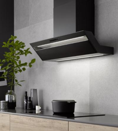 Der nahtlos verschweißte Edelstahlkorpus der Kopffreihaube Formline beherbergt effiziente Technologie für eine wirkungsvolle und energiesparende Erfassung der Kochdünste. Der zweifache Wraseneinzug ermöglicht besten Wirkungsgrad bei kleinstem Geräuschpegel mit lediglich 46 db(A).