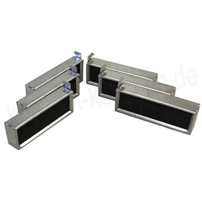 Ein stabiler Edelstahlrahmen mit regenerierbaren Kohlefilterwaben, 12 pro Element.