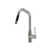 Die dynamische, nach vorne gerichtete Formensprache von SYNC kommt dem Nutzer buchstäblich entgegen und ermöglicht ein bequemes Arbeiten. Charakteristisch für diese Küchenarmatur ist der konische Übergang zwischen Körper und Auslauf sowie die parallel dazu verlaufende Innenkontur des kerbschnittlosen Hebels. Der lange Hebel von SYNC und der ergonomische Öffnungswinkel von 90 Grad erleichtern die richtige Dosierung der Wassermenge. Die konische Formensprache der Küchenarmatur setzt sich auch in dem trapezförmigen Profil des Hebels fort. SYNC ist als Designvariante auch mit kreisrundem Auslauf erhältlich. Die dynamische, nach vorne gerichtete Formensprache der Küchenserie bleibt auch bei diesem Entwurf erhalten.