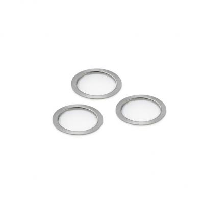 Einbauleuchte. Metallgehäuse, edelstahlfarbig, Ausleuchtung ohne sichtbare LED-Punkte.