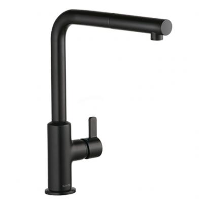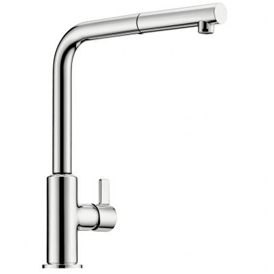 Einhebelmischer. Mit schwenk-/herausziehbarem Auslauf, seitlichem kurzem Hebel, Keramikkartusche und Laminarstrahlregler.