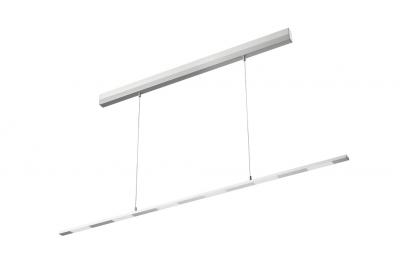 Pendelleuchte. Aluminiumgehäuse, edelstahlfarbig eloxiert. Inkl. Konverter und 1-Kanal Farbwechsel Fernbedienung.