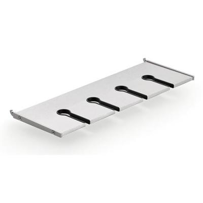 Das Aurora Relingsystem wertet die Küche durch sein einzigartiges Design auf. Die optionalen Zubehörteile werden durch einfaches einhängen in die Reling sicher fixiert.