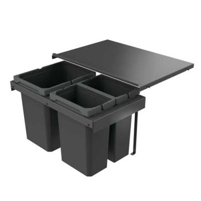 Das 600 mm breite Cox®-Stand-UP®-Abfallsystem wird für die Korpusbreiten 800 mm und 900 mm mit einem passenden feststehenden Gesamtdeckel geliefert. Somit entsteht neben dem Abfallsystem noch weiterer praktischer Stauraum in dem Auszug.