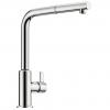 Einhebelmischer. Mit schwenk-/herausziehbarem Auslauf, seitlichem kurzem Hebel, Keramikkartusche und Laminarstrahlregler.