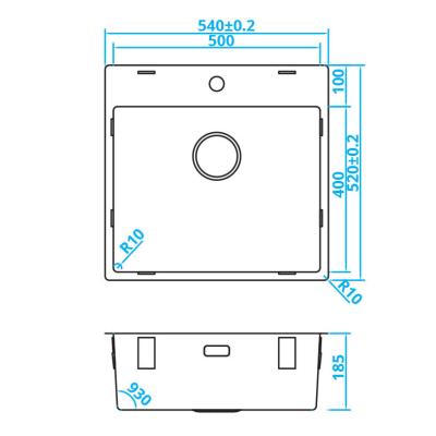 Spülenmaß (BxTxH) 540 x 520 x 185 mm